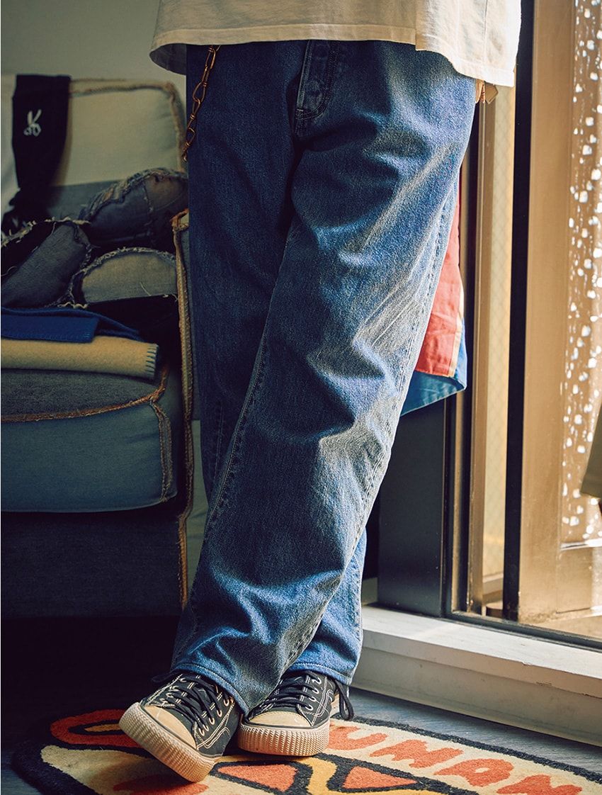 ワタリは太くしつつ裾に向かって自然なテーパード。太い細いといったシルエットのトレンドを気にすることなく、クルマの運転も、バイクに跨がるときも、飛行機移動にだって気軽にはける。そんな、純粋にカッコいい“普通”のデニムに仕上がりました。