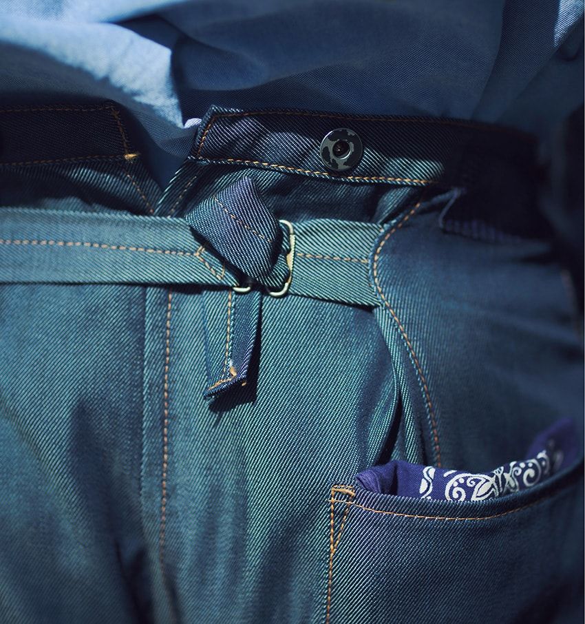 縫製は僕が惚れ込んだ岡山県の凄腕職人が数十台の黒くて古いミシンを使い分け、ひとりで全工程を手掛けています。まるで上質なスラックスのような風合いは、ほかでは絶対に味わえないはず。