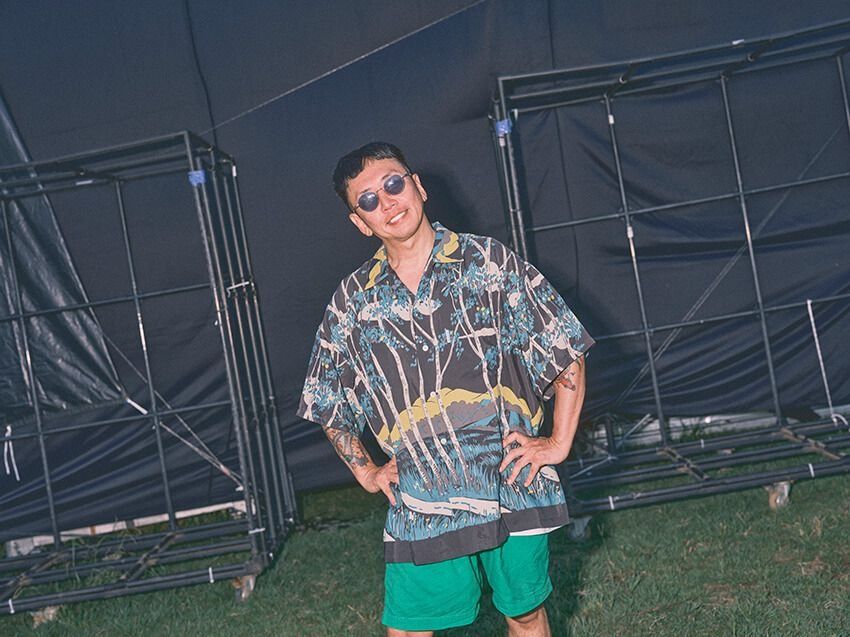 そこで語ってくれたのは、初開催のフェスで感じた独特の空気、行き当たりばったりで決めるという衣装観、サーフィンや植物といった日常の過ごし方、そして「ラッパーからミュージシャン」へと歩みを広げていく今の姿について。