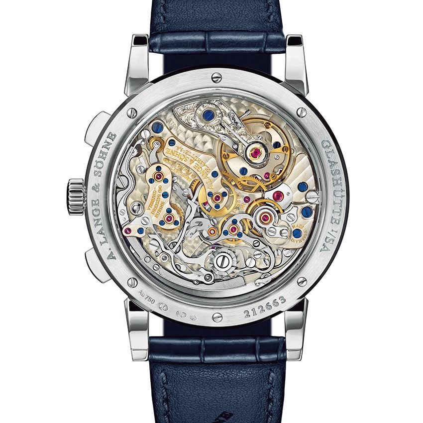 「A.ランゲ&ゾーネ/1815 クロノグラフ ホワイトゴールド750」ムーブメントの造形美において、時計界屈指のクオリティを誇るA.ランゲ&ゾーネ。簡潔なダイヤルデザインを採用するこの手巻き式クロノグラフは、表だけでなく裏も圧巻だ。