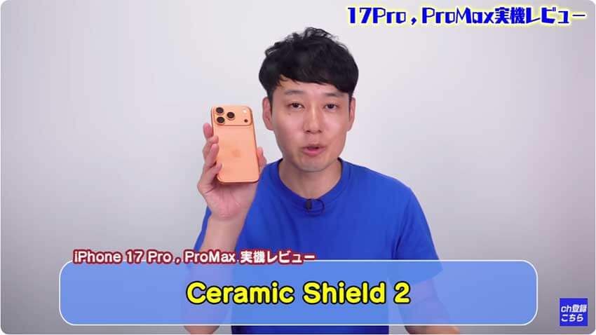 iPhone 17 Proには「Ceramic Shield」というセラミック製の素材が使われており、従来モデルの4倍割れにくいよう工夫されています。