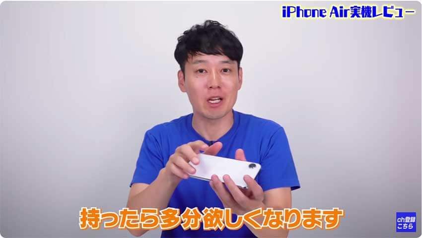 iPhone Airは「薄くて軽い」のが大きな特徴です。実際に持ってみると持ちやすくて、欲しくなるでしょう。「軽いだけでスマートフォンの使い心地はこんなにも違うのか……」と実感できます。