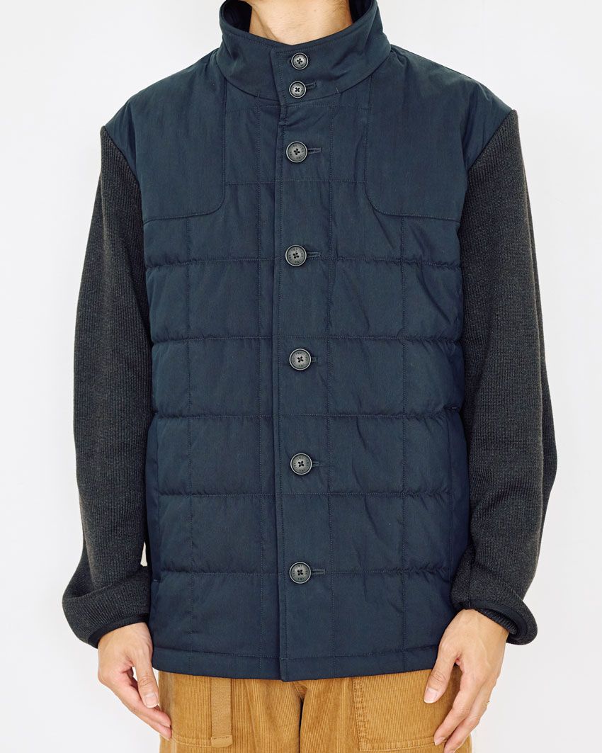 そこで大活躍しそうなのが「コンビネーションキルティングジャケット」。ボディにはミドルレイヤーに適した分量の中綿と、袖などにはジャージ素材を採用した、異素材MIXのジャケットである。