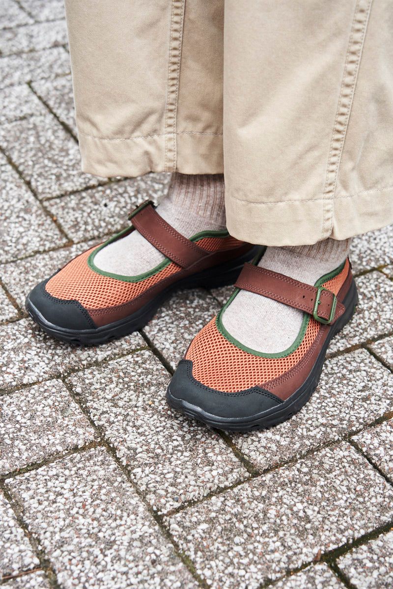 デニムシャツにボーダーT、そしてチノーズと力の抜けたアメカジスタイルでキメた若木さん。全体的にフェードした色感で、こなれた雰囲気を醸し出している。そんな彼が愛用するのが「RX Marie Jeanne」。リカバリー効果に優れた一足は、ブラウン・オレンジ・グリーンの色使いも素敵。足元に添えれば、一気に秋めいた着こなしに。