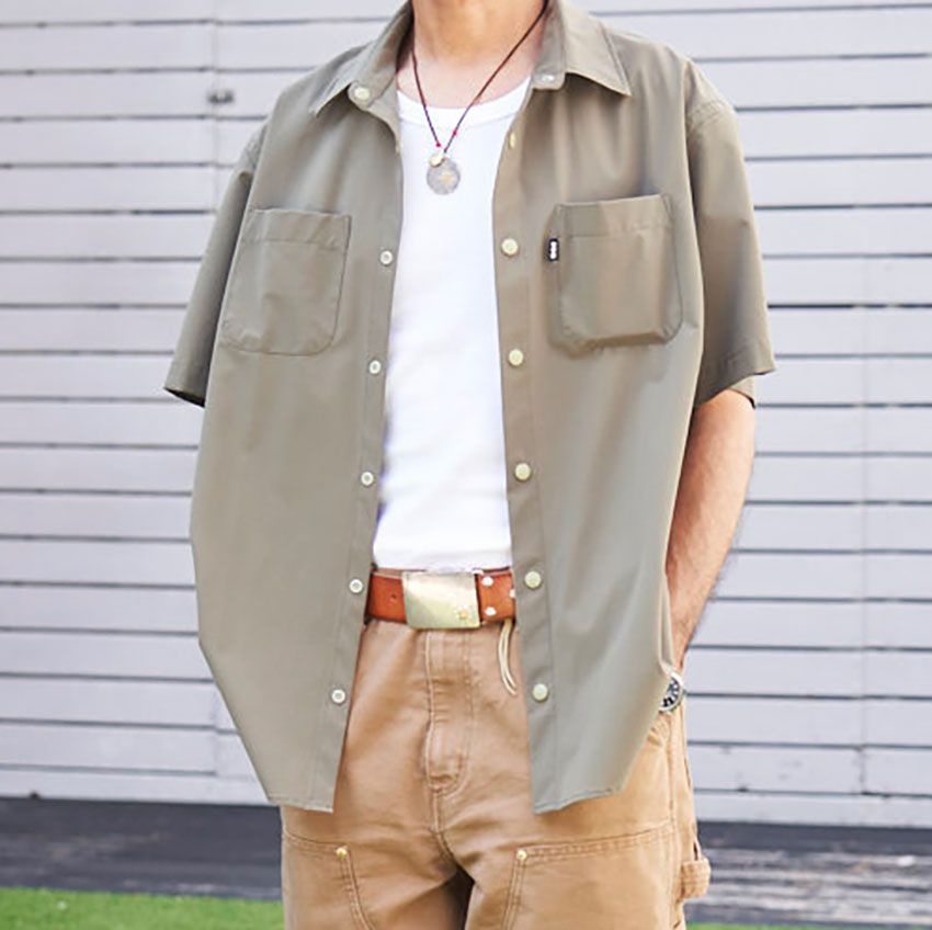 【写真4点】「アメカジを極めし3名の先輩たち」の詳細を写真でチェック ① ワークシャツ&ディッキーズを、色使いで新鮮に