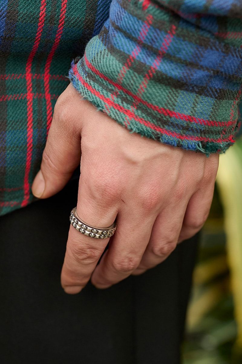 ダウンベスト=ダービー シャツ=ペンドルトン パンツ=カーハート シューズ=ヴァンズ 帽子=ヨーコサカモト 眼鏡=ジュリアスタートオプティカル バッグ=エンダースキーマ 腕時計=ロレックス リング=トムウッド リング2=エルメス