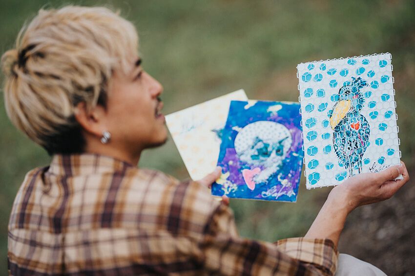 ――衝動的に描き始めるタイプなんですね。岳 今はネガティブな感情を出すことよりも、ポジティブなテーマを形に残したい気持ちが強いです。小さい作品なら1日で下地を作って、その上から描き始める。大きな作品はもっと時間がかかります。でも大事なのは、“感情が動いたらすぐ描く”。それが自分のスタイルかもしれません。
