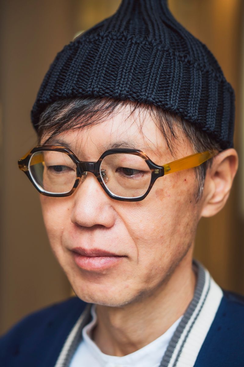 ▶︎齋藤さんのスナップをすべて見る齋藤久雄さん(51歳)リブ付きの袖と裾によりスタジャンのように見えて、フロントの切り替えによってラペル付きジャケットのようにも映る。モンクレールのユニークカーディガンが、文句なしに主役のオーラを放つ。