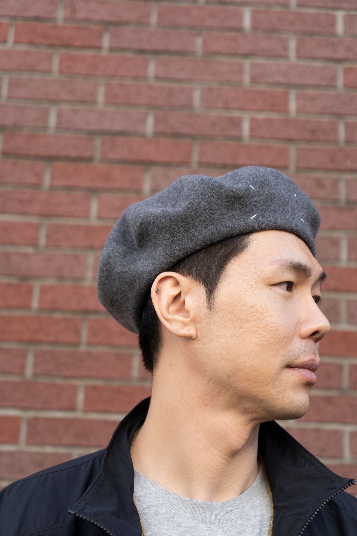 ジャケット、シューズ=ともにナイキ カーディガン、帽子=ともにメゾンマルジェラ Tシャツ=古着 パンツ=コムデギャルソン