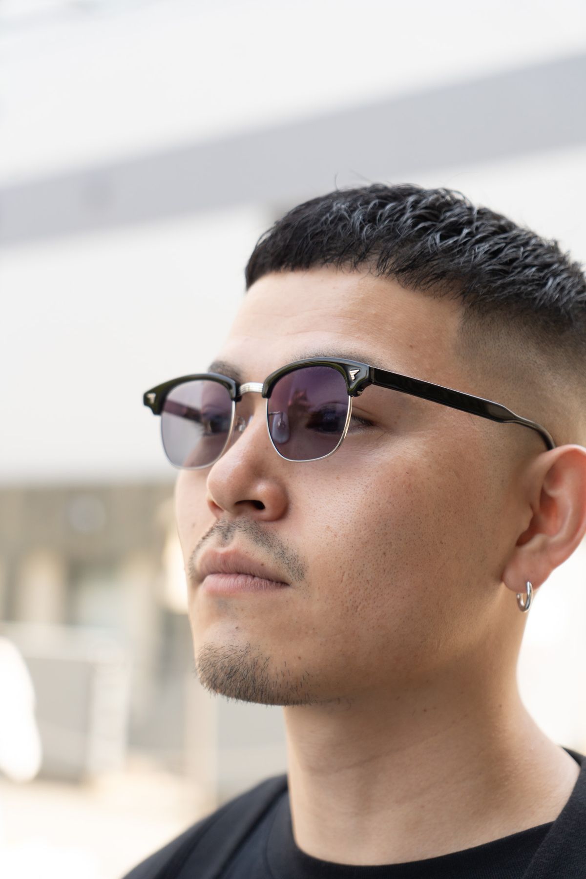 となると周辺の脇役たちは無難に、とはいかず相応の雰囲気を纏わせるのが洒落者の流儀。シャツはバンドカラーで、パンツは超ワイドで。顔周りを含め、まとまりのある個性の掛け算に成功した。