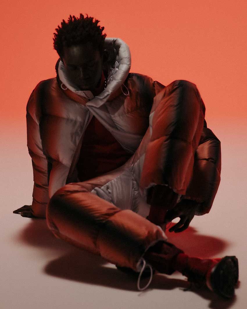 カプセルコレクションでは、ダウンジャケットやダウンパンツ、バッグの3アイテムを展開。 それぞれ2⾊のカラーバリエーションで、⽇本の伝統技術である輪島塗(漆塗り)から着想を得た繊細なグラデーションが、各アイテムに落とし込まれている。