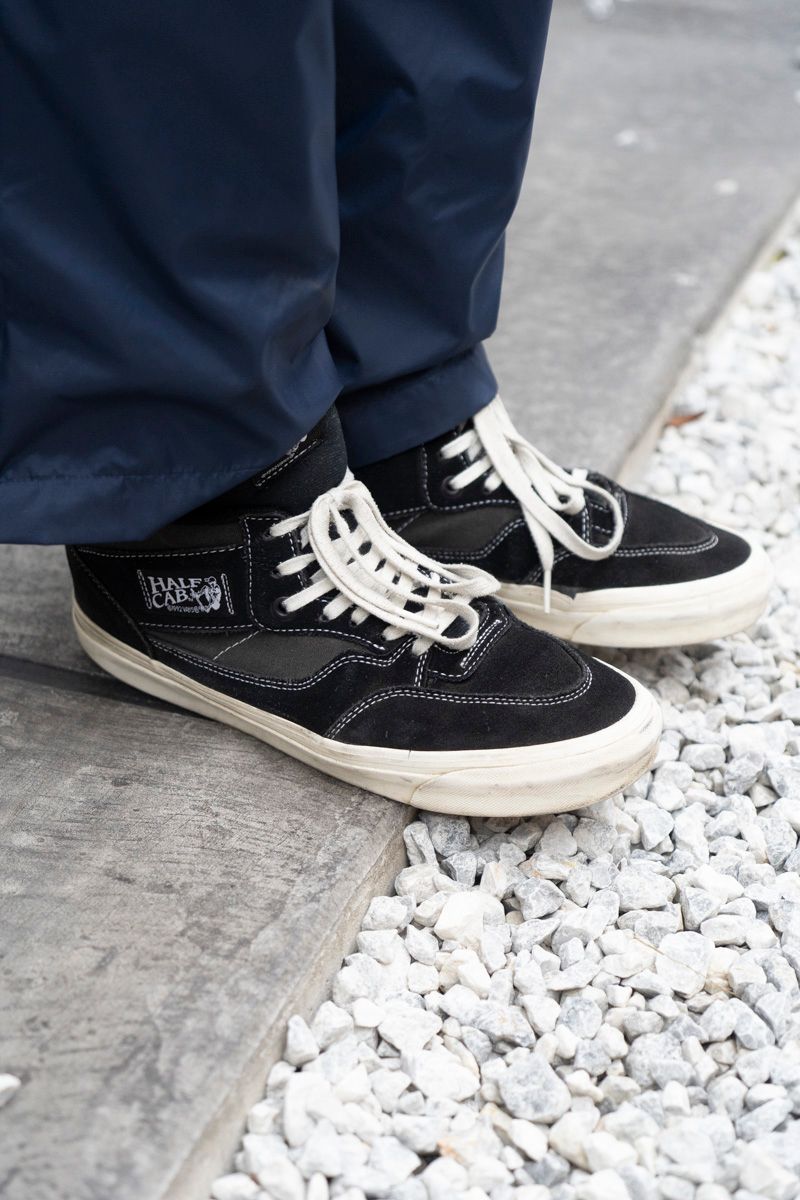 シャツ=ラルフローレン Tシャツ=ヘインズ パンツ=ナイキ シューズ=ヴァンズ 帽子=アウェイク 眼鏡=ゾフ バッグ、ブレスレット=ともにノーブランド 腕時計=カシオ リング=ステューシー リング2=ティファニー