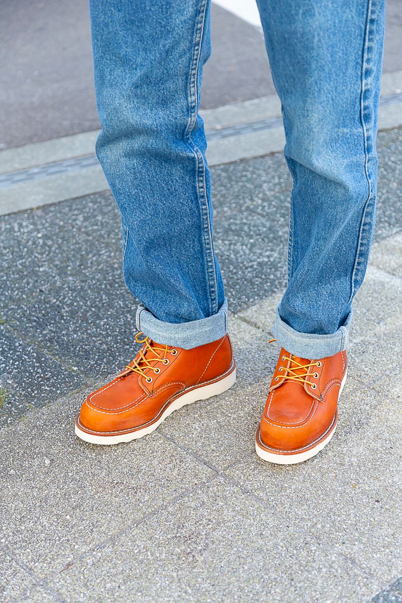 白いものが混じり始めたジャストサイズのリーバイスと、歴戦のダメージを趣に変えるレッドウィングのスウェードブーツ。文句なしにシブい!