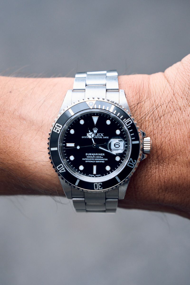 コラボTやナイキのダンクなど、シックなグレスラをこなす遊びある選択も感度高し。同系色で揃えた腕元のサブマリーナー デイトは、装いのさりげない重しとして機能する。