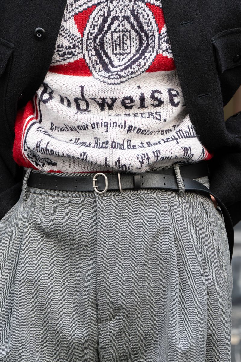 ジャケット、シューズ=ともにルメール ニット=古着 パンツ=ヘドメイナー ベルト=ジルサンダー