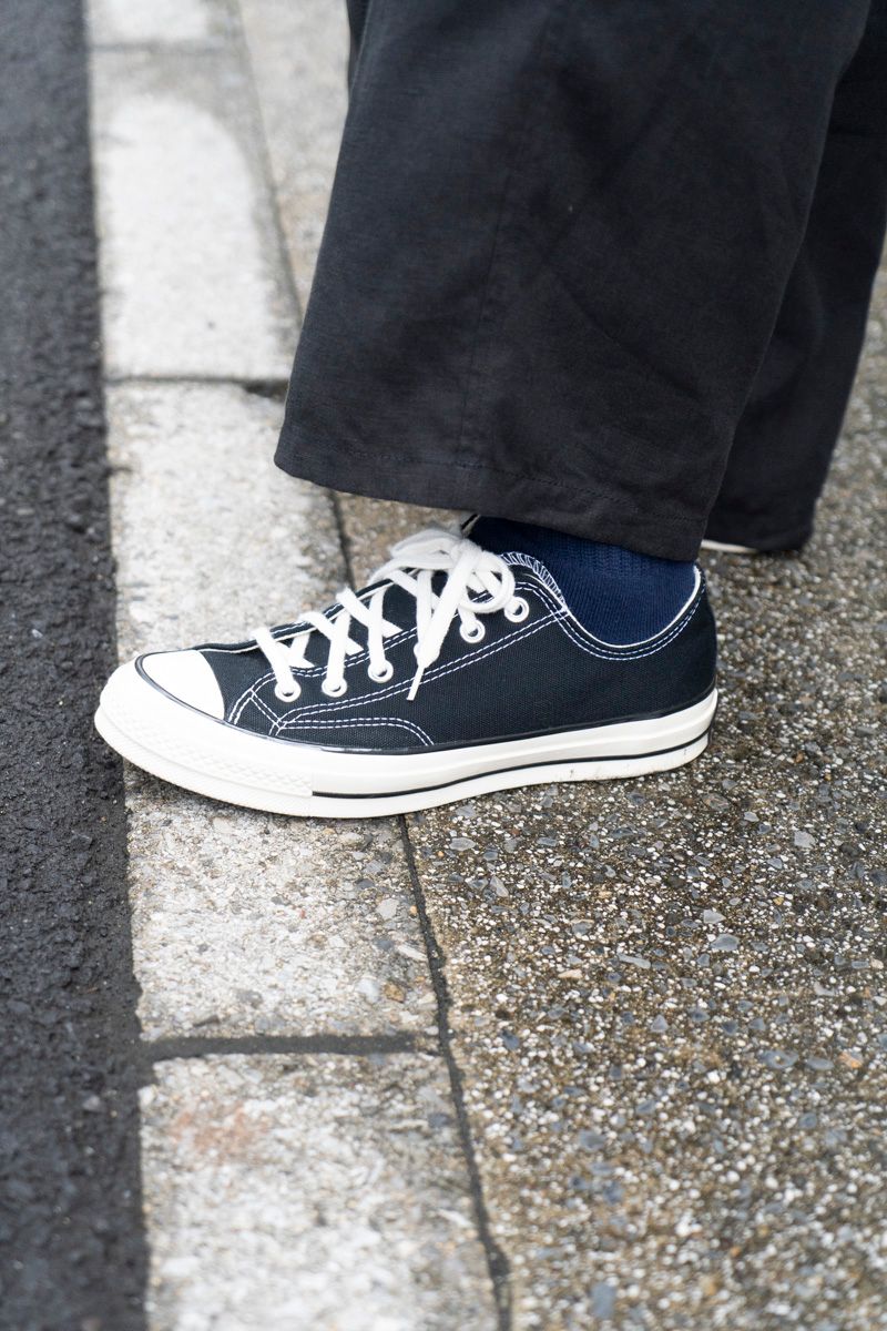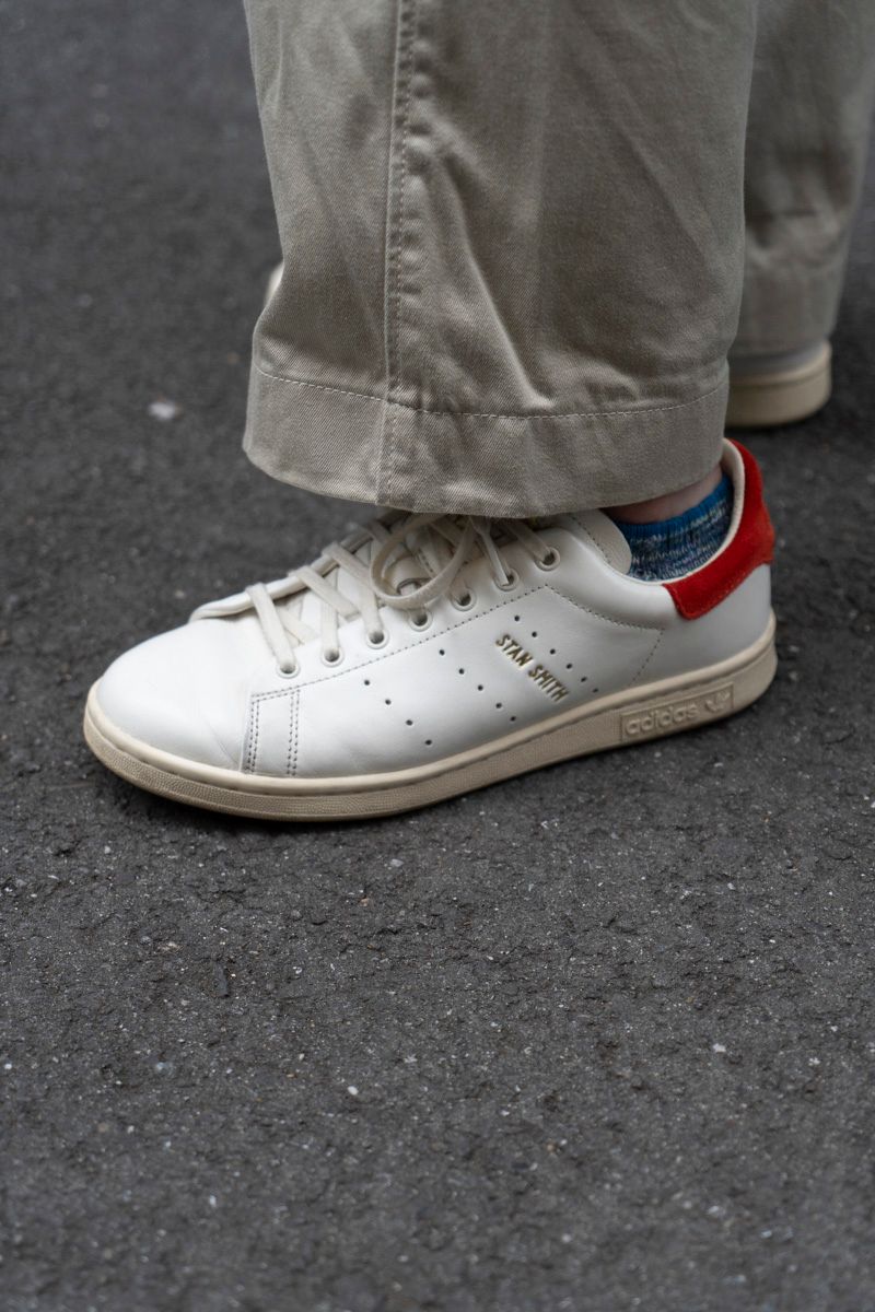 シャツ=マービンポンティアックシャツメーカーズ Tシャツ=ノーブランド パンツ=エイトン シューズ=アディダス オリジナルス×ソングフォーザミュート