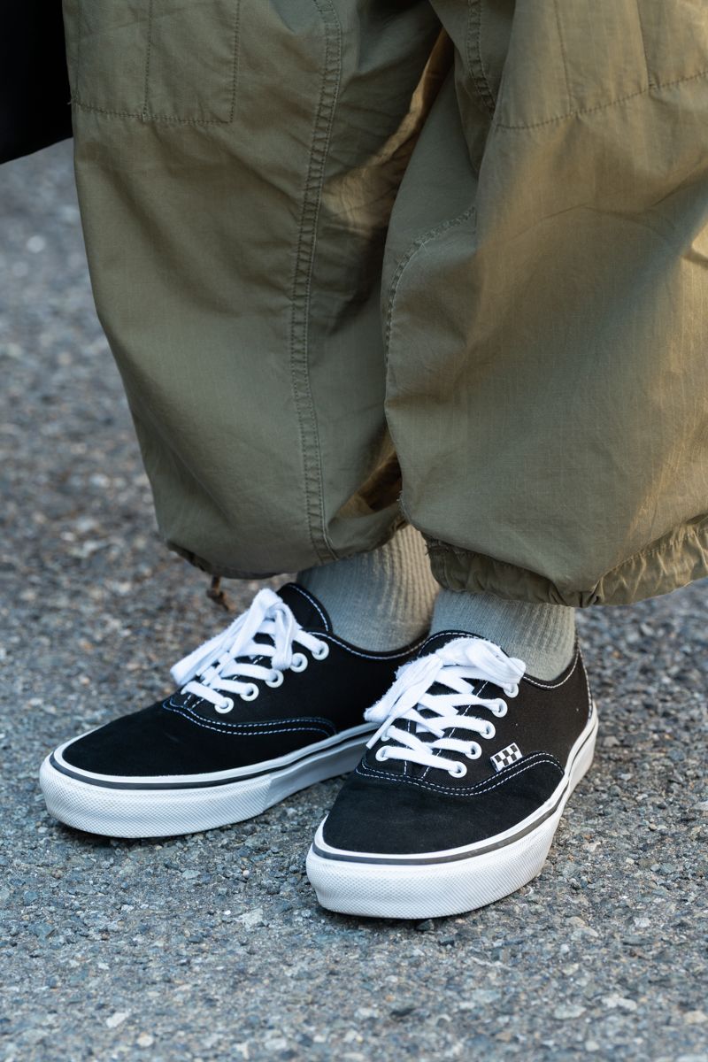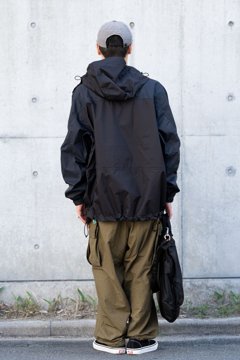▶︎楠本さんのスナップをすべて見る楠本恭平さん (44歳)SSZのカーゴと、ブローシュアのシェルパーカ。ビームスの加藤忠幸さんが手掛ける両アイテムに上下それぞれの主役を任せ、リラックス感のあるルーズシルエットを構築した。