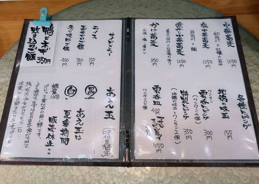 同店が提供するレギュラー麺メニューは、「中華蕎麦」、「塩 中華蕎麦」、「煮干し 中華蕎麦」、及び各々の具なしバージョンである「かけ蕎麦」。