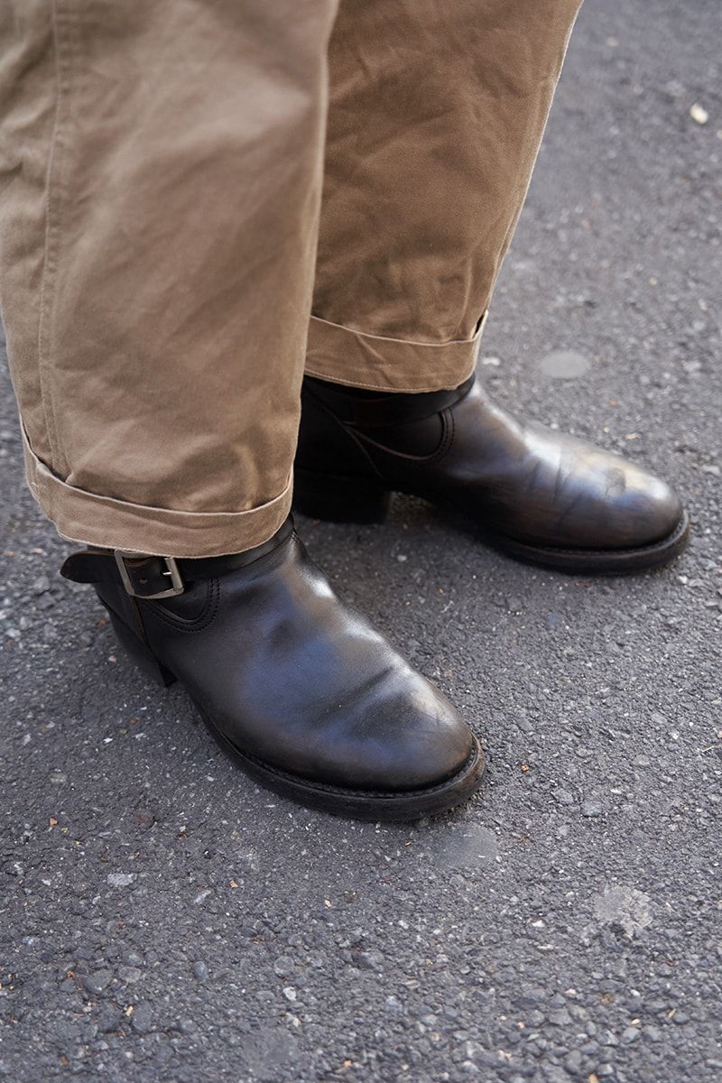▶柴田さんのスナップをすべて見る柴田圭介さん(36歳)ラストは、モノトーンに縋らないタフな横縞の取り入れ方を紹介。ファー付きのレザージャケットという骨太アイテムの相方に、マリンな香り漂う古着のボーダーシャツを抜擢した。