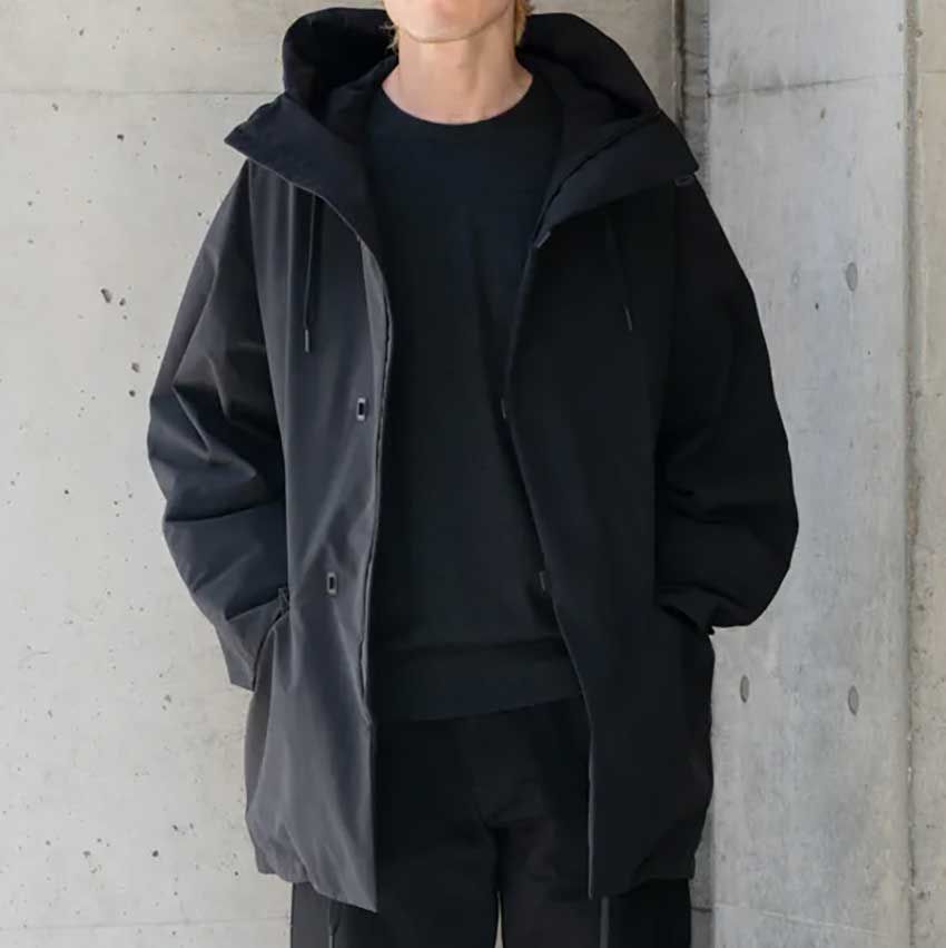 ▶今井さんのスナップをすべて見る今井 丈さん(45歳)機能が充実していながら、アウトドアな見た目とは一線を画す都会派アウターの牽引役であるテアトラ。ロングコートは袖や身幅がたっぷりとしたシルエットで、大きめのフードが利いた、まさにシティ派必見の仕上がり。