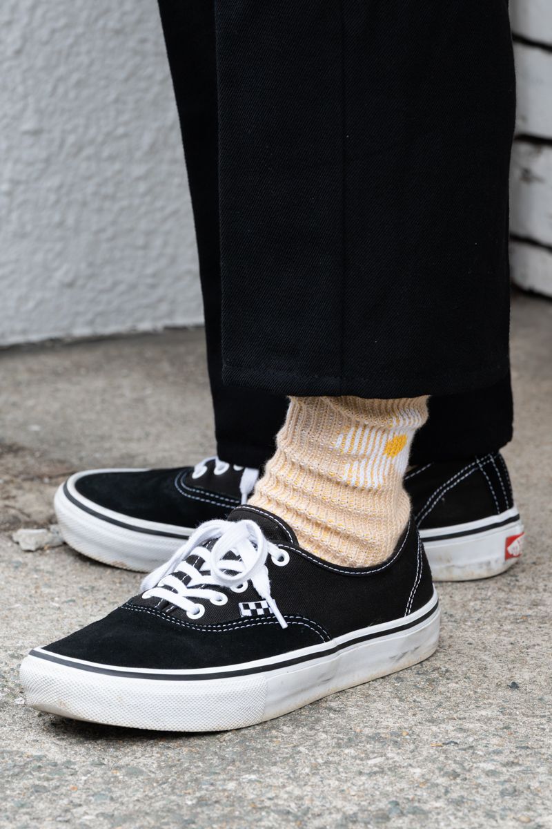 コート、シャツ、パンツ、帽子=すべてフジト シューズ=ヴァンズ 靴下=オブスキュアソックス リング=クロムハーツ