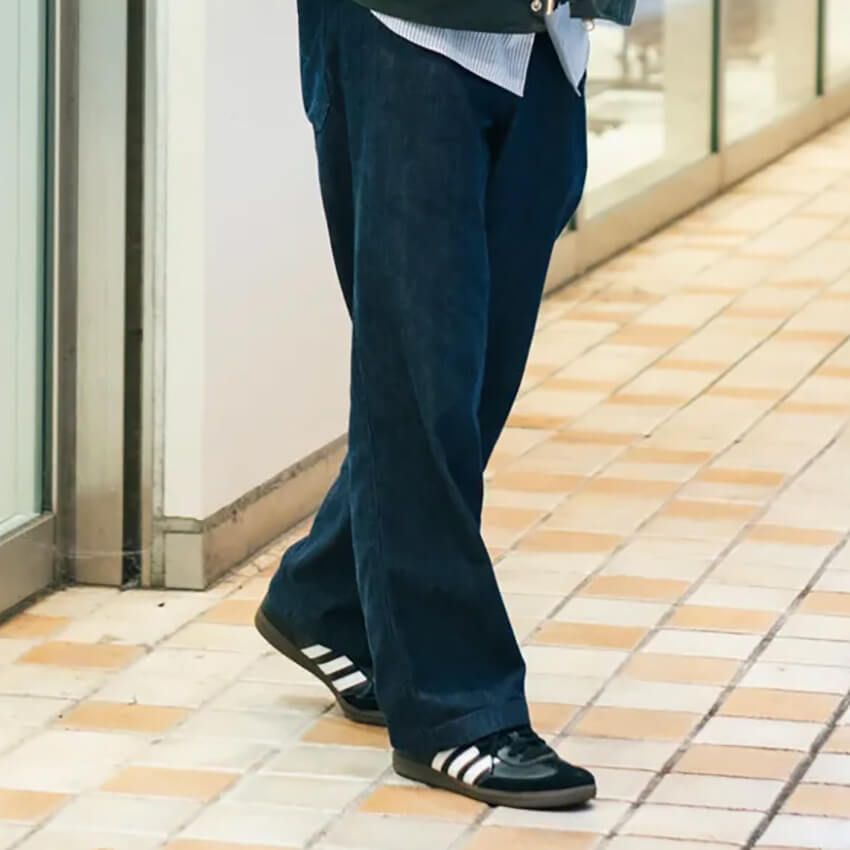 ▶︎阿部さんのスナップをすべて見る阿部智也さん(36歳)カイハラとの協業など、ユニクロのデニムは本気度だいぶ高め。だからシンプルに合わせてもブランドモノに決して見劣りせず、むしろ着用者の審美眼を引き立ててくれる。