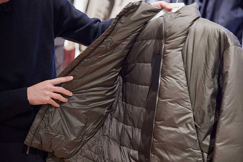 小関 以前のモデルは、ダウンルーム(ダウンが詰まった区画)のステッチがオモテ面に見えていましたが、今回のアップデートにより、外からではダウンの区画が分からないような、非常にシンプルな作りに変わりました。