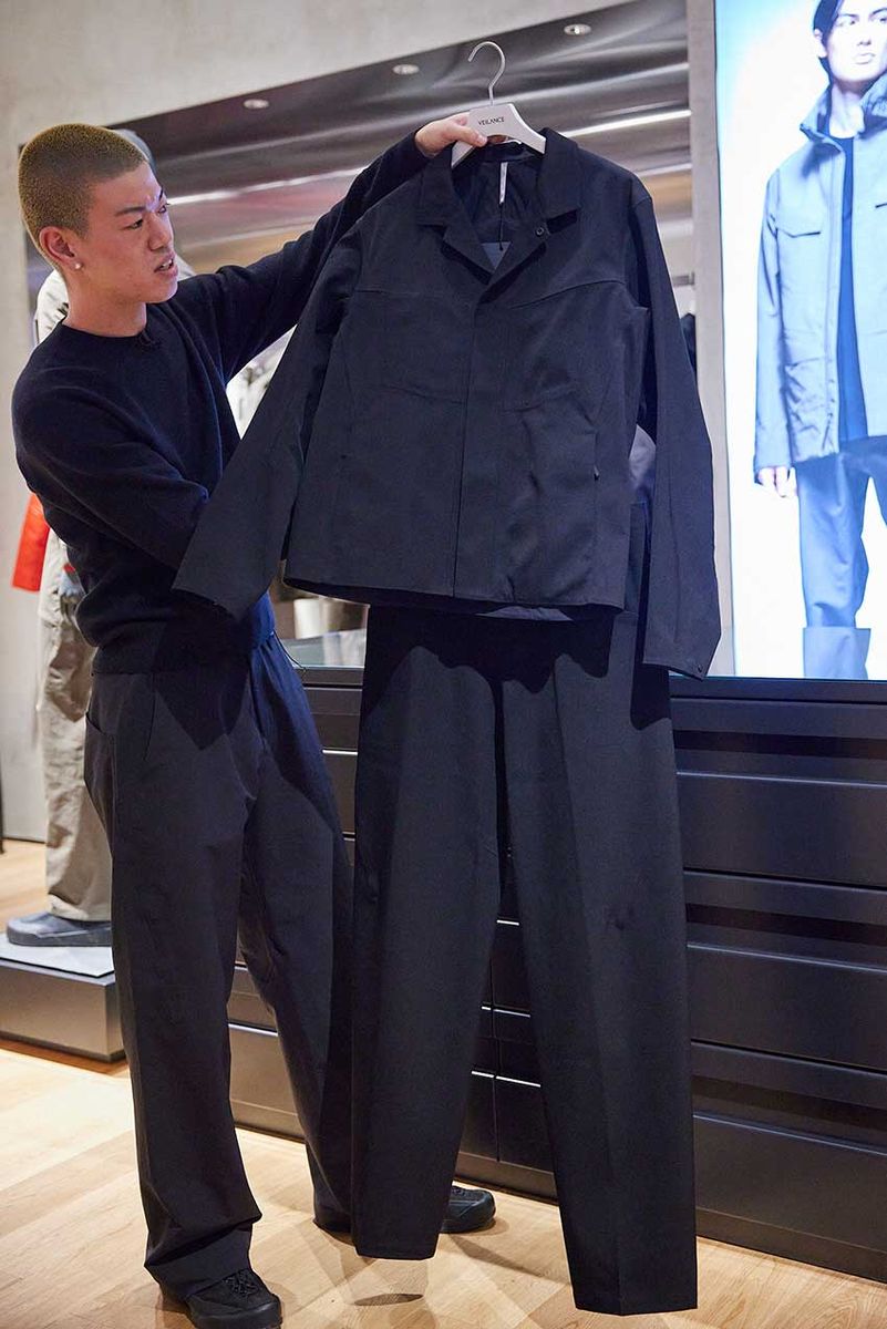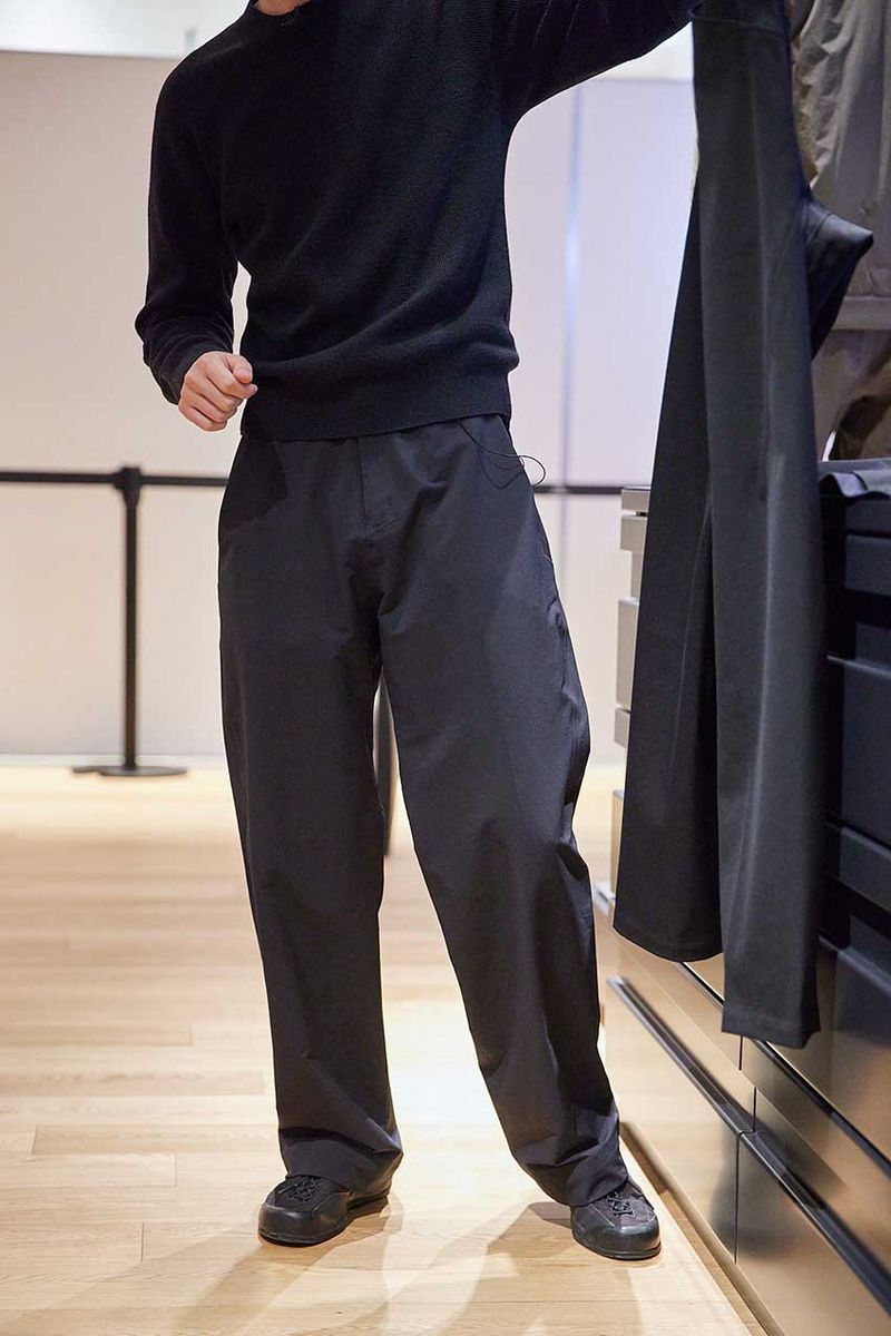 小関 シンプルなのでいろいろなアイテムに合わせやすいですが、特にこちらのパンツとのコーディネイトがおすすめです。適度にテーパードがかかっていて形がすごくいいんですよ。トップスもご用意がありますので、セットアップで着ていただくのもいいですね。