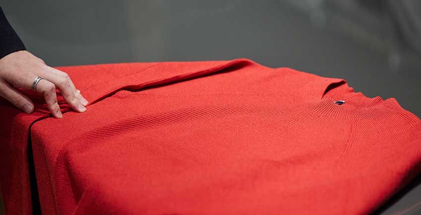 小関 ヴェイランスは2009年から始まりましたが、今季、初めてセーターが登場しました。これが今、各店ですごく人気なんですよ。特徴はズバリ、首元に向かって集まるように仕上げた編み目ですね。