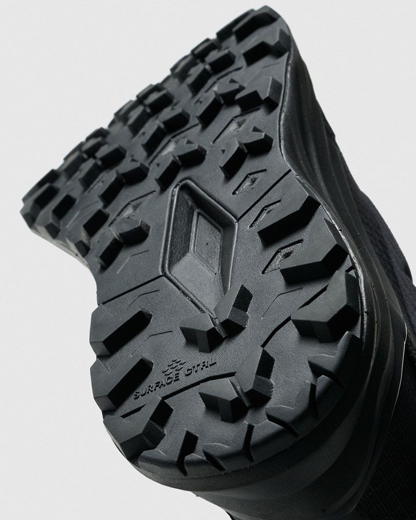 アウトソールには、天然ゴムを10%配合した「Surface CTRL」ラバーを使用。濡れた岩場や土道、街のアスファルトでも高いグリップ力を発揮する。さらに防水透湿素材としてGORE-TEXメンブレンを採用し、突然の雨や雪にも対応。
