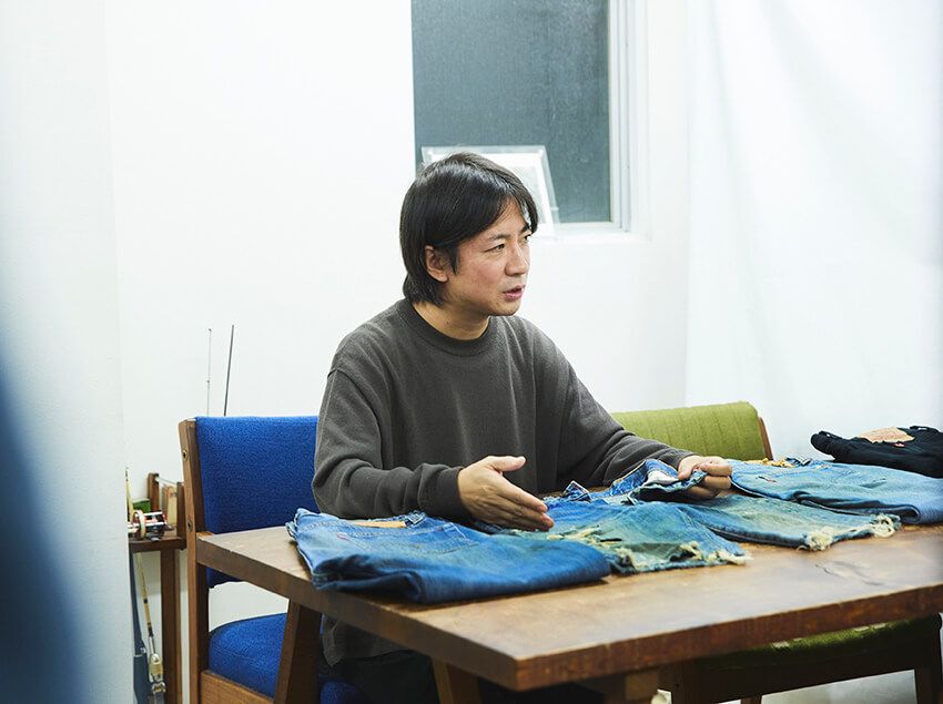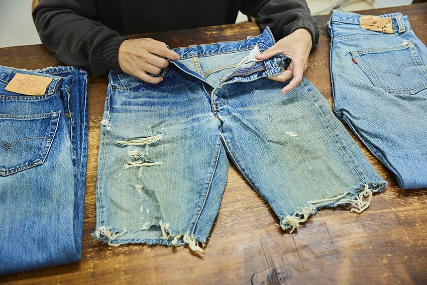 「リーバイスのジーンズには昔、今では考えられない常識みたいなものがありましたよね。そんな中、ショップのみんなと着こなしのテイストが被っては埋もれてしまうのでいろいろ考えていました。それであるとき、酔っ払って家に帰り、突如、勢いでカットオフしたんです。だから切り口部分が汚い。もう若気の至りって感じですね(苦笑)」。