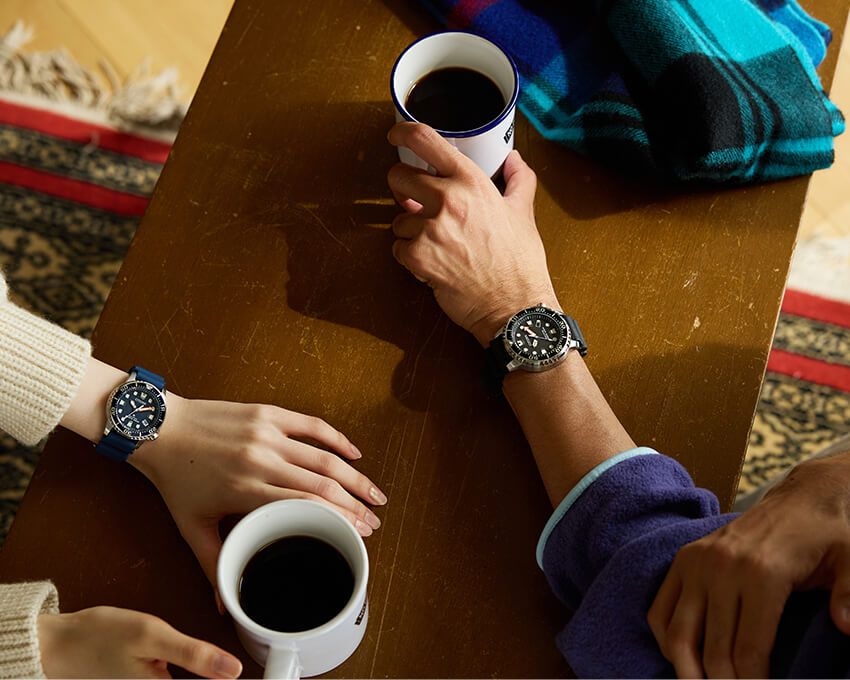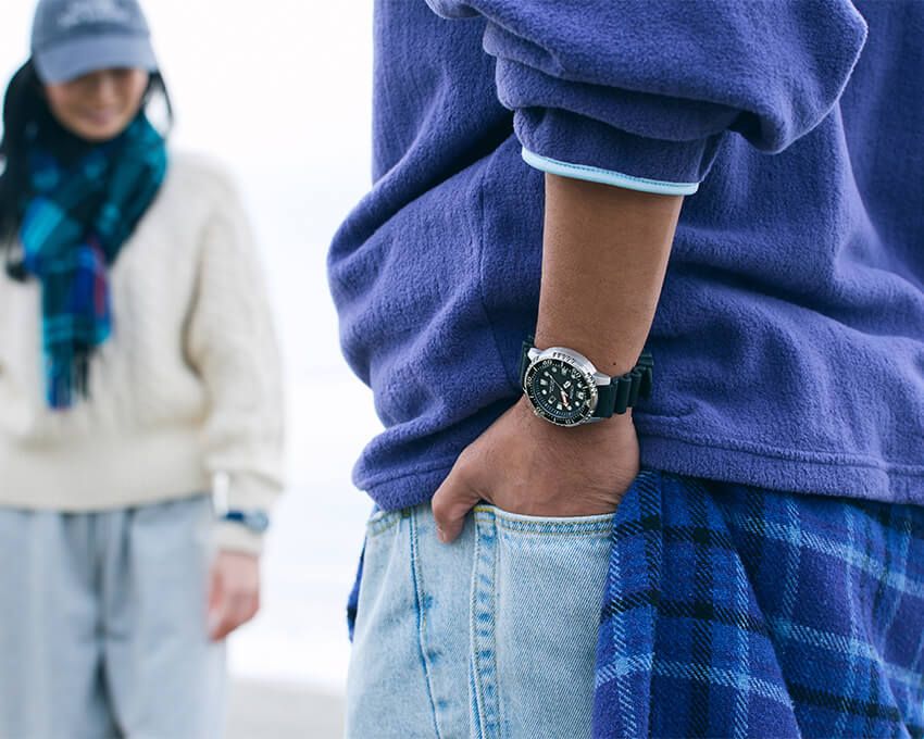 そんなナチュラル志向のライフスタイルにうってつけなのが、実用性と手に取りやすさに定評のあるモダンデザイン。エコ・ドライブ ダイバー200m「BN0156-05E」と「EO2021-05L」なら、気負いも気恥ずかしさもなくリンクコーデがかなう。