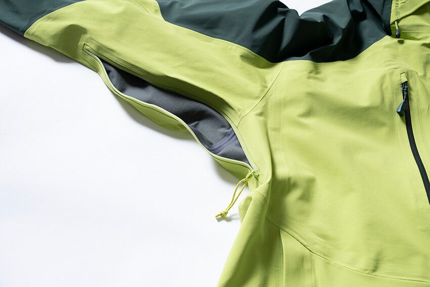 前述の「イグニス ダウン パーカ」と同様に、こちらも防水透湿素材「スーパードライテック」が採用されている。アルパインシェルのようにゴワつかない、しなやかな素材の特性も、快適な着心地と動きやすさを出すポイントだ。