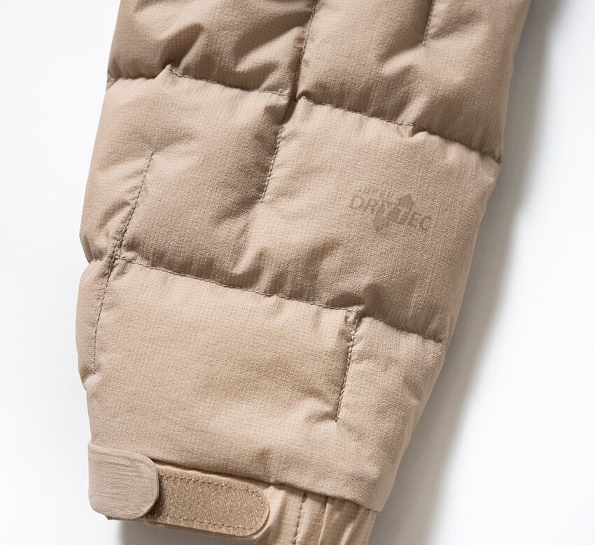 「モンベル独自の防水透湿素材『スーパードライテック』を採用しています。外からの冷気の侵入とウェア内の蒸れを逃す素材で、ダウンの濡れも抑えることができ、暖かさが持続します。