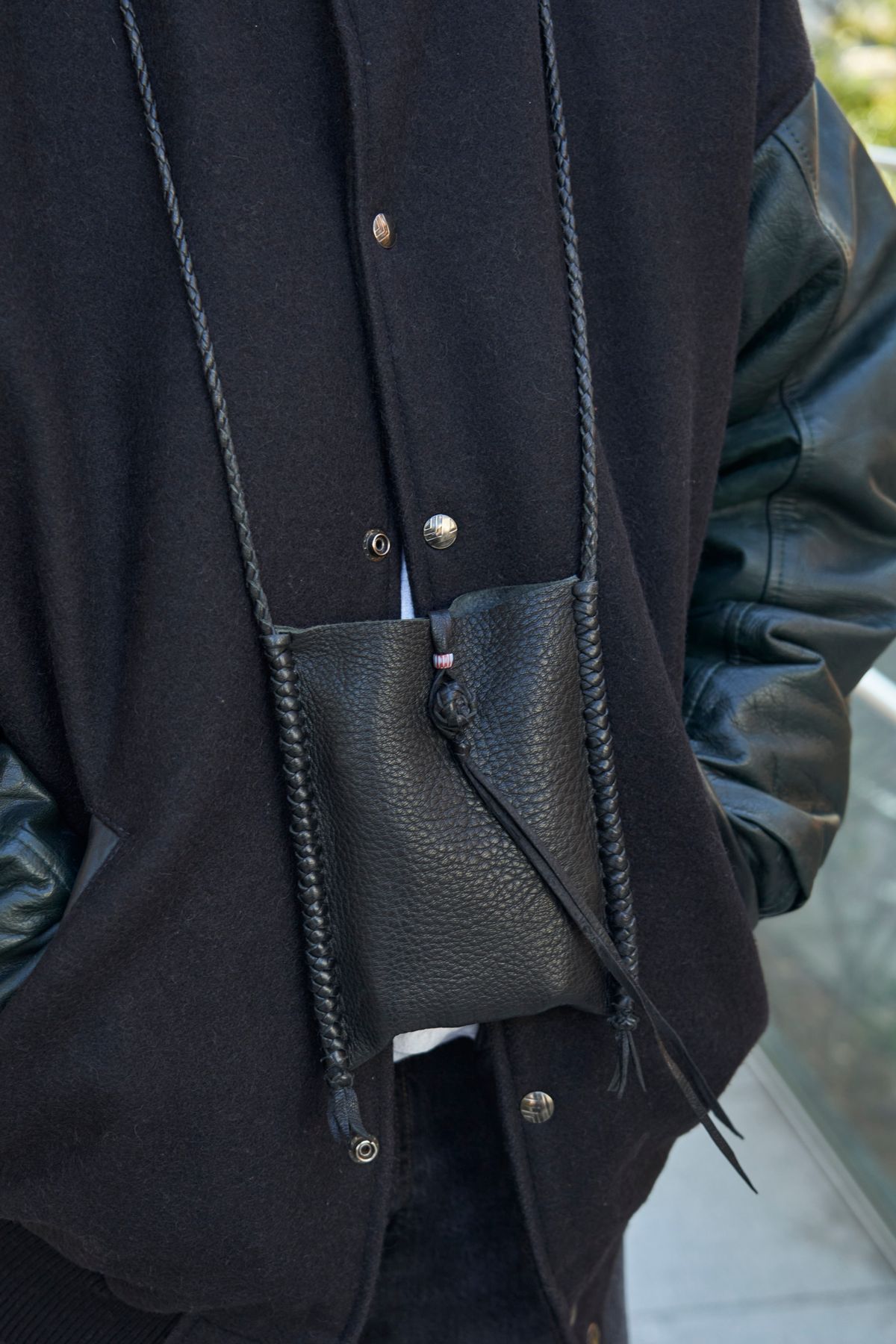 首から下げたネペンテスのレザーバッグ、少々アクのあるワイドフレアのブラックデニムなど、個性的な黒子たちの存在も脱・ブナンの要因に。要は、センスいいねってこと。