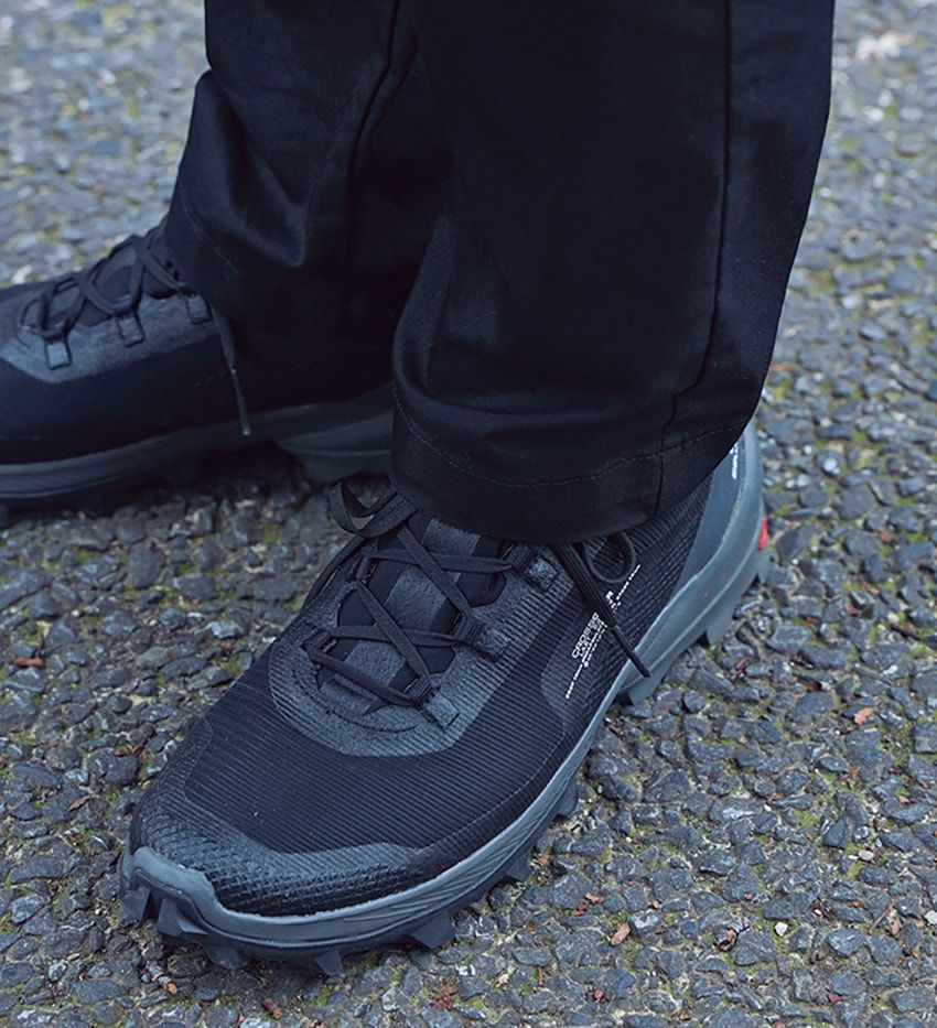ライトな素材感がダークトーンを重たく見せず、ポケットや裾のコードで調整したシルエットメイクによって個性まで引き立たせるのだ。
