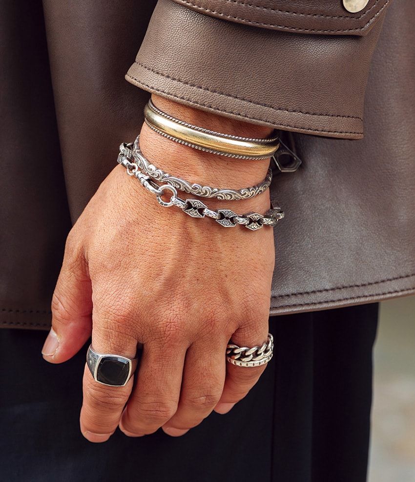 ライダーズ=ジョンリンクス Tシャツ=ニューレーベル パンツ=ルメール 靴=ペテロオラウム サングラス=A.D.S.R ブレスレット=ラスト