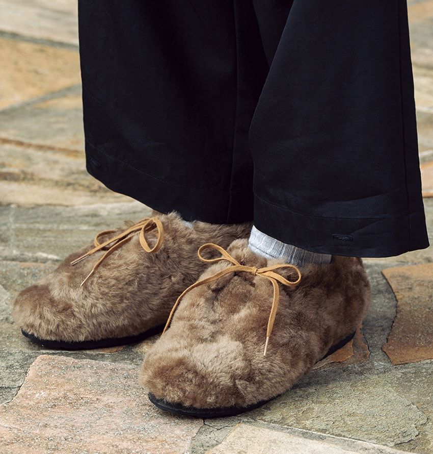タックインしてバランス良くまとめた日永さんの場合は、モコモコの靴にも優しさの影が。寄り添うキッズの気持ち、わかります。