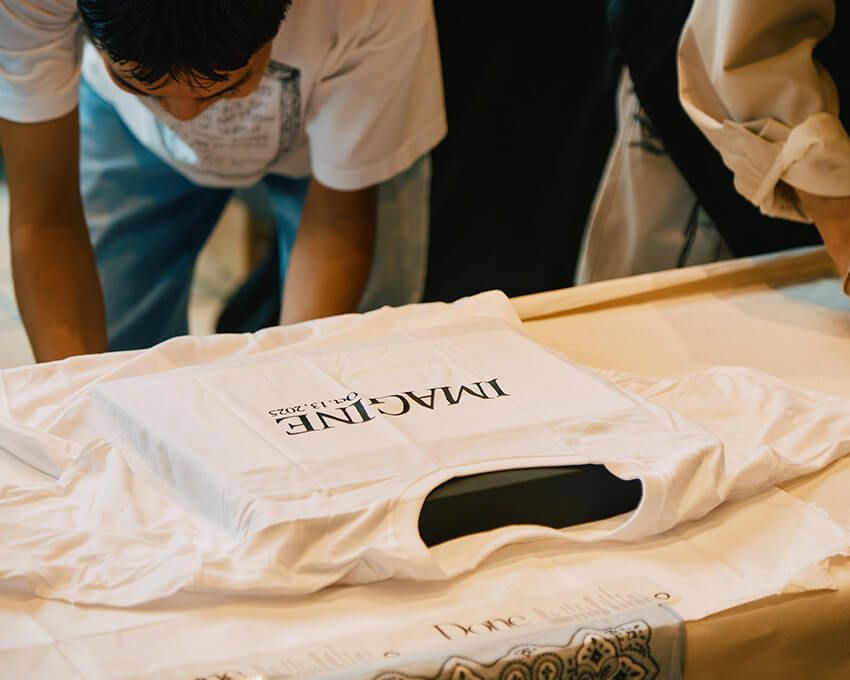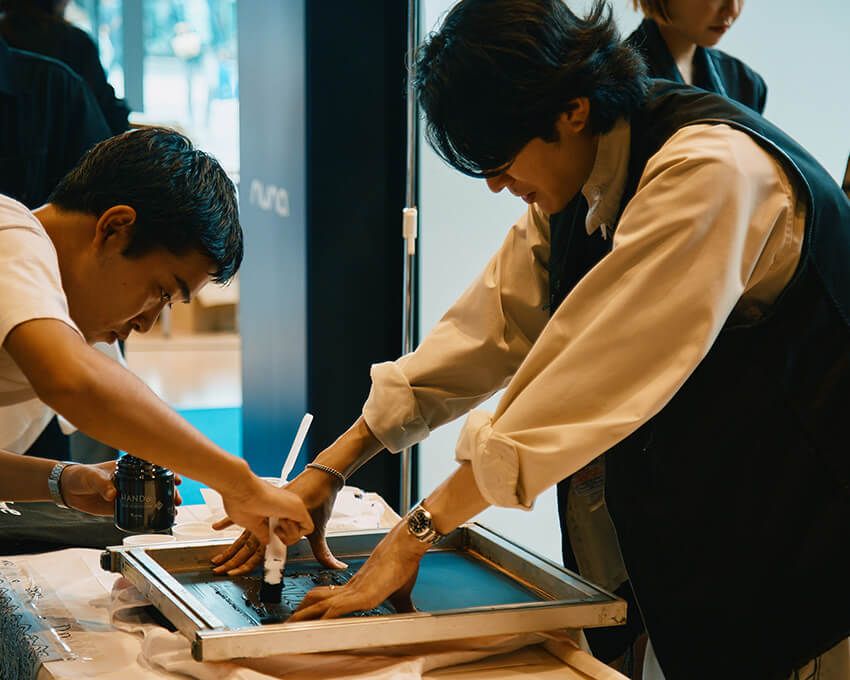 古着を現代のスタイルにアップデートする「Done」は、リメイクアイテムの販売に加え、シルクスクリーンのワークショップも実施。持参したTシャツやスウェットに、イベント限定ロゴ「IMAGINE」をプリントすることで、来場者にアップサイクルの楽しさを伝えていた。