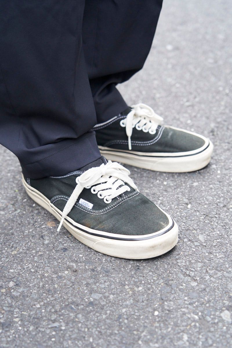 ▶︎マットさんのスナップをすべて見るマットさん(34歳)ローファーデザインのヴァンズは大人らしさに履きやすさなど、大人の欲しいものを全部詰め込んだ一足だ。そんな傑作にスラックスは合わないわけがない。