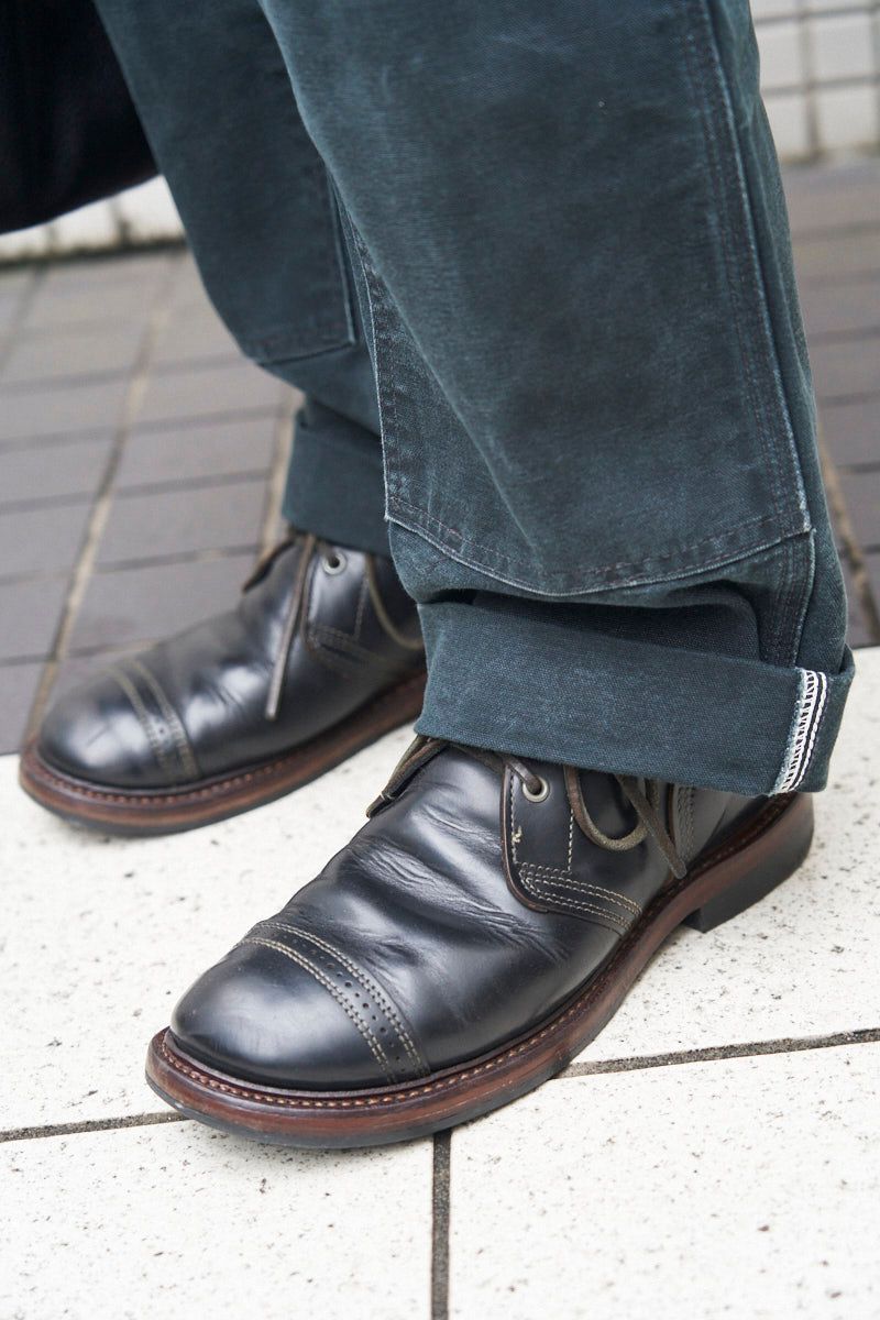 ▶︎さかいさんのスナップをすべて見るさかいさん(33歳)レッドウィングとナイジェル ケーボンが手がけたチャッカブーツは、キャップドトウならではのワーク然とした存在感が抜群。