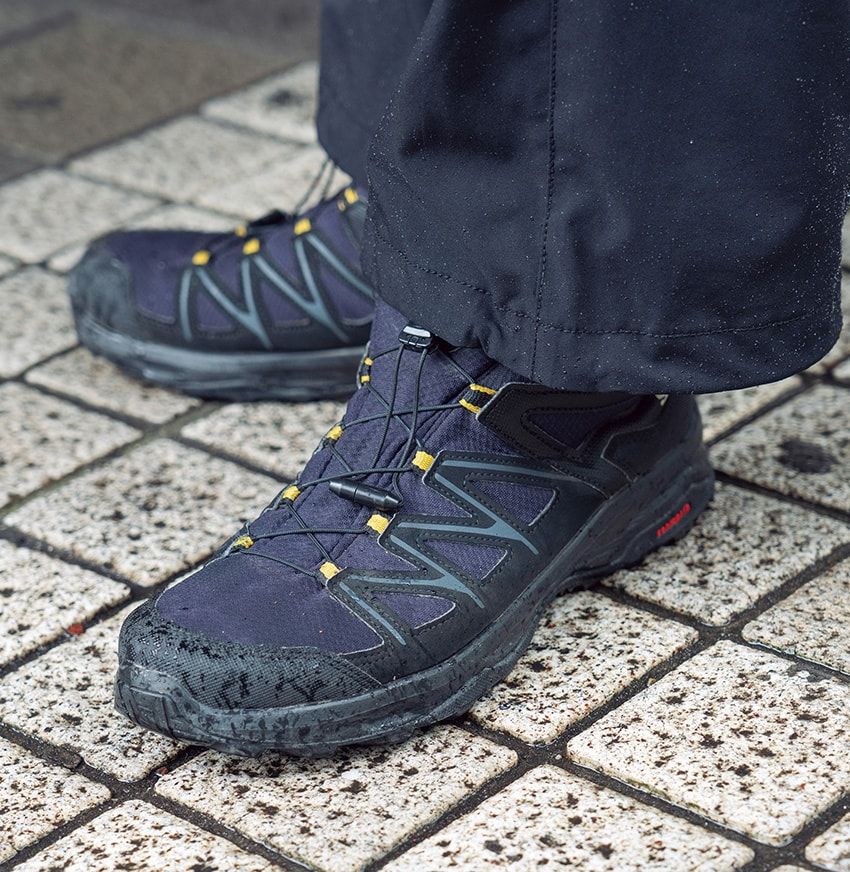靴は防水の「シティズン エヴォ」を選んで、実用性とデザイン性を両取りしている。
