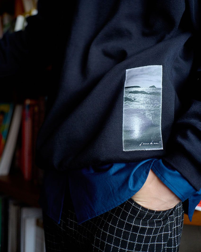 アニエス・トゥルブレ撮影による“海の写真ネーム”も象徴的だ。身にまとうことで海の環境への関心が広がるようにという想いが込められている。