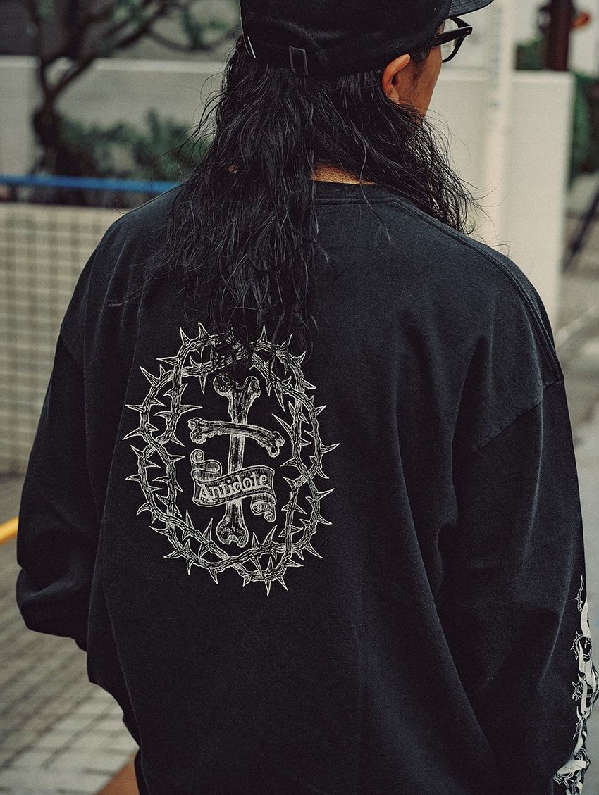 シャツ、パンツ=タイトブース Tシャツ=タイトブース × ブラックアイパッチ スニーカー=アース 帽子=オーバーライド