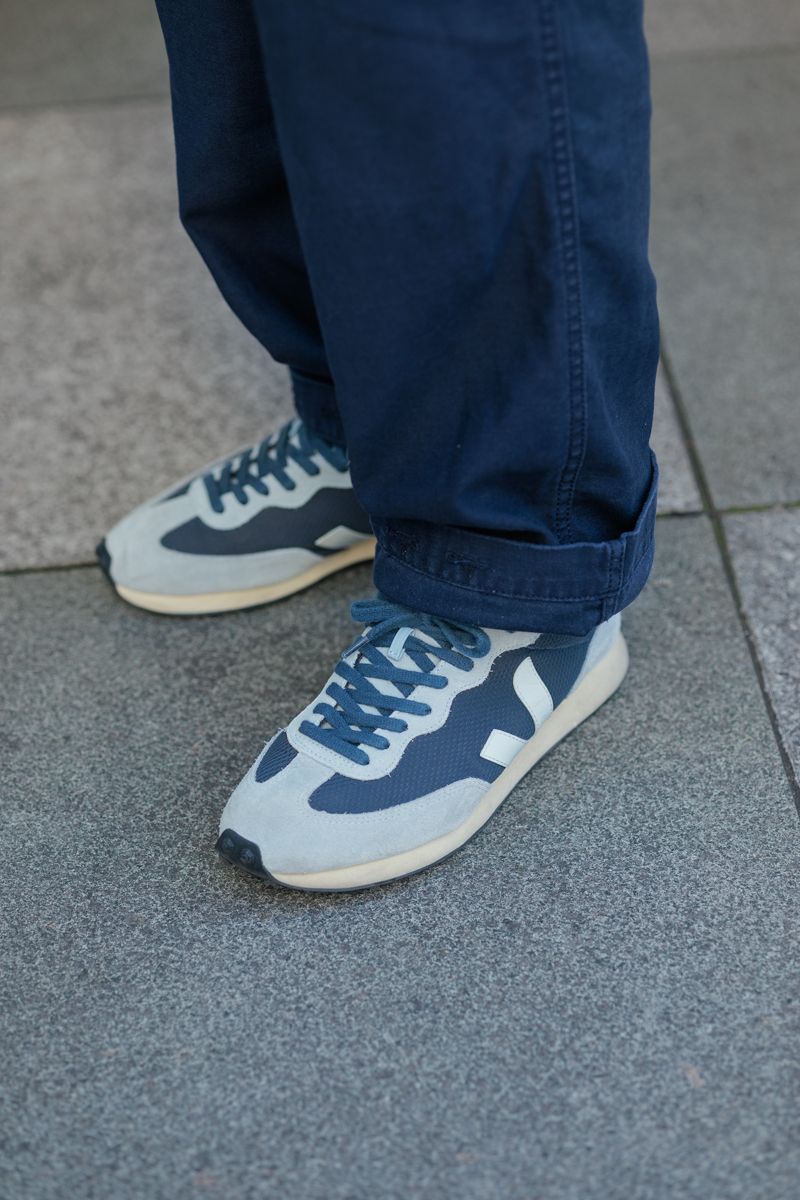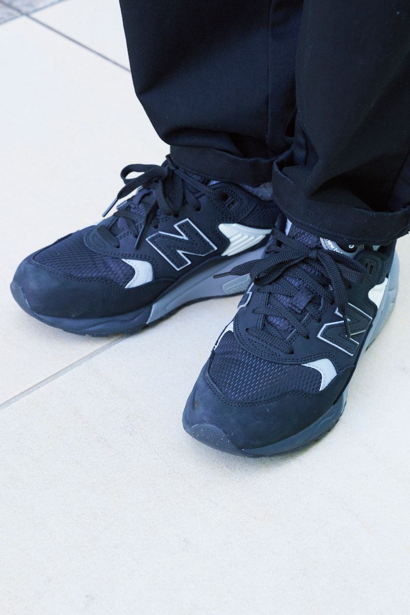 裾と襟からチラ見えするシャツも、品のいい印象を促進する。シンプルながらに完成された大人ストリートな塩梅。清潔感のあるネイビーのニューバランスともグッドバランスだ。