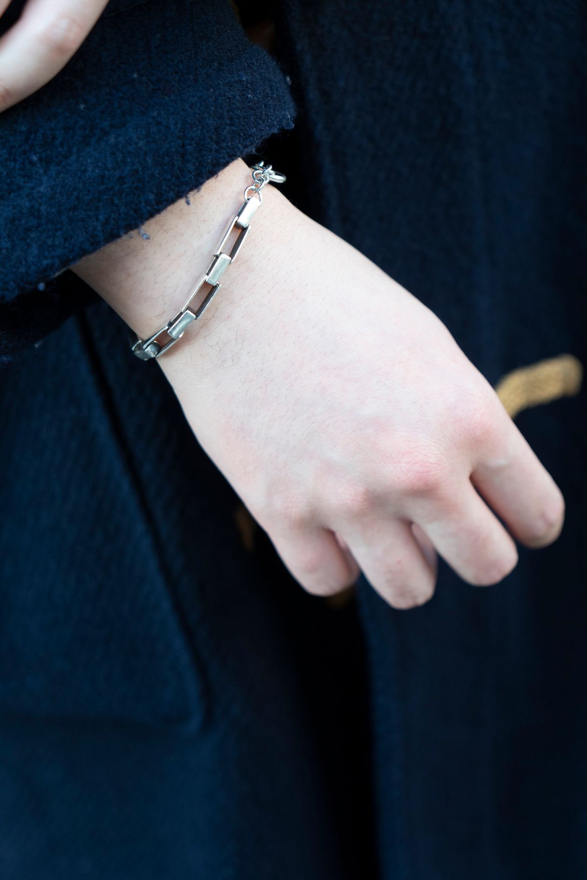 例えばベースボールキャップや太セルのアイウェア、ネイティブアクセサリーなどがそれにあたる。左腕にはブラックダイヤルのロレックスで大人っぽさまで意識した。