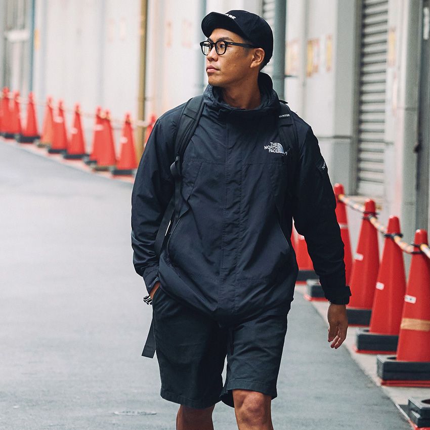 ジャケット=ザ・ノース・フェイス ショーツ=グラミチ スニーカー=ワークマン