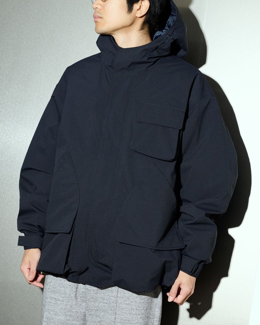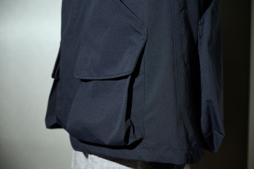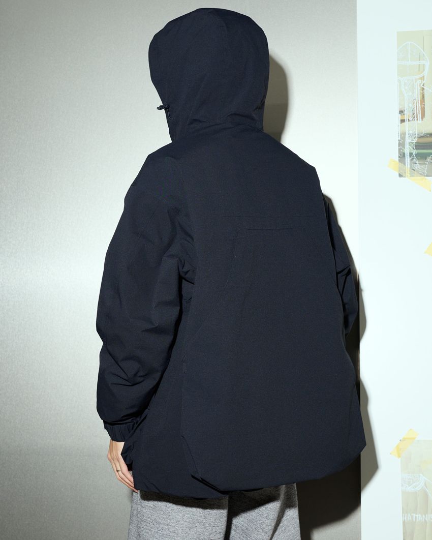 シンプルでシックな雰囲気を醸すパーカタイプのコート。ポリエステルリップストップを三層構造で仕立てたボンディング生地を採用している。耐久撥水・防風・保温と、冬場のアウターに求められる要素を十分に満たしているアイテムだ。