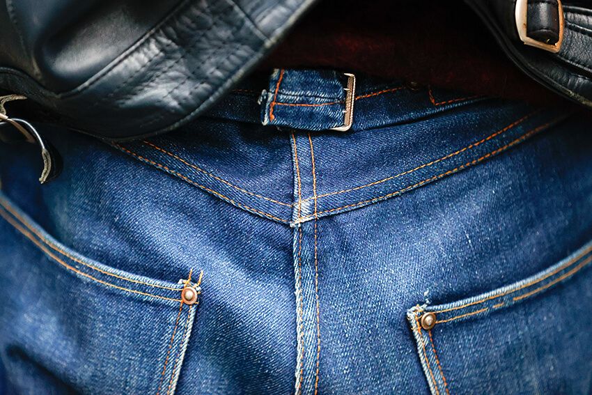 堤 「’30年代のフォアモスト」、いわゆる“ストア系”ですね。5ポケットだけどバックルが付いたタイプ。“育てる”というより“付き合う”って感覚に近いんですよね。はくほどにアタリが立つし、布の息づかいみたいなものがあって……。今日のコーデのなかで一番スペシャルかもしれません。ほんと、ヤバいです。