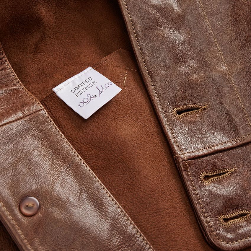 今回、LVCが発表した復刻モデルは、オリジナルを徹底的に解析し再現したものだ。丸みを帯びた襟や袖口、短くボクシーなシルエット、両サイドの真鍮製シンチストラップなど、特徴的なディテールを細部まで忠実に踏襲している。